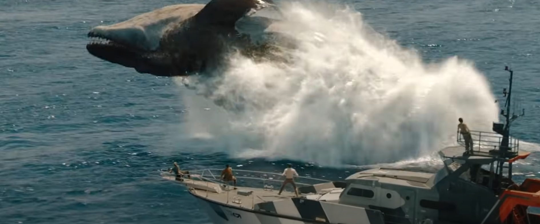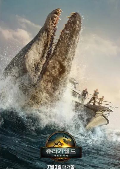 이번 작품에서 가장 인상적인 부분은 역시 공룡들의 등장입니다. 특히 모사사우루스의 바다 액션은 스필버그의 '죠스' 50주년을 기념하는 듯한 오마주로 느껴졌습니다. 거대한 몸집과 빠른 속도로 인간들을 위협하는 모습은 마치 바다의 고질라를 보는 듯했습니다.
